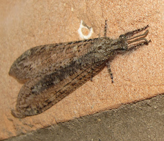 Here it was, very late in autumn on October 24, yet there were still large numbers of grasshoppers present in the scrub and grassland habitat along a sandstone ridge that parallels the trail. Vegetation here is a little different than on the plains proper. Sure, there is still yucca, prickly-pear cacti, and rabbitbrush, but also Gambel's Oak, elm trees, cottonwoods, and other plants characteristic of upland habitats. Insect diversity is correspondingly unique.